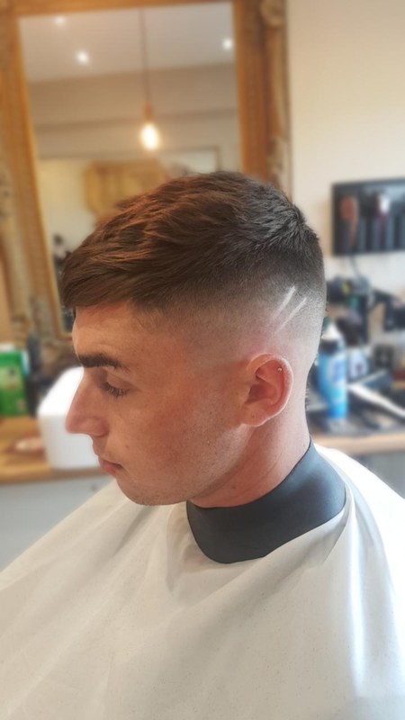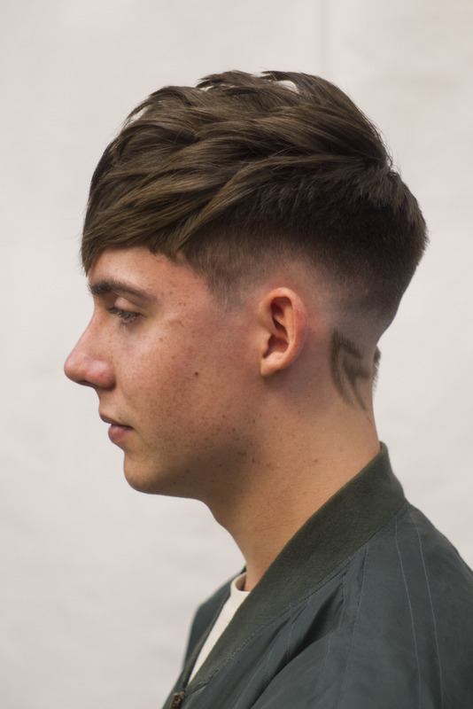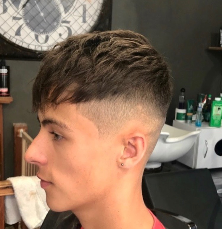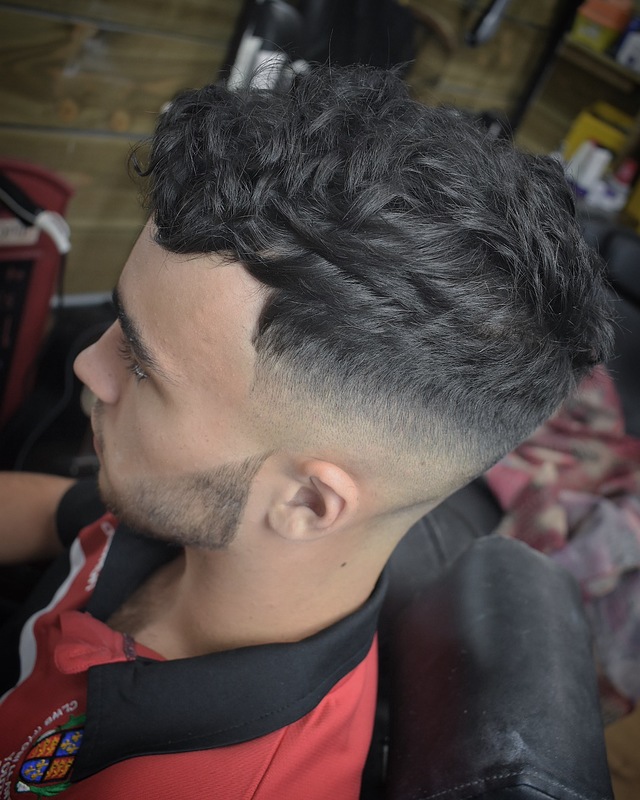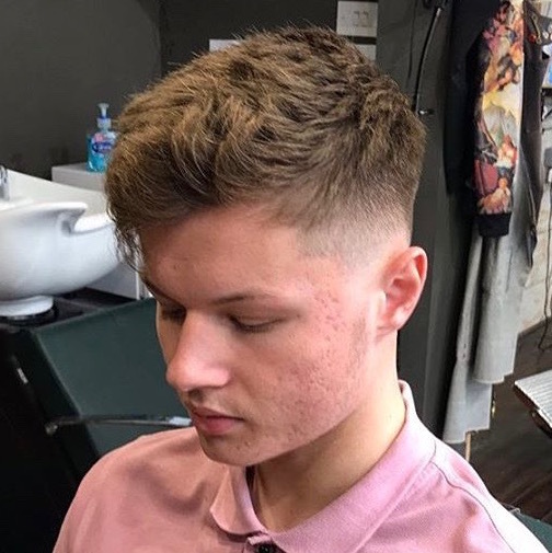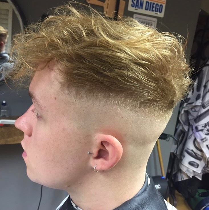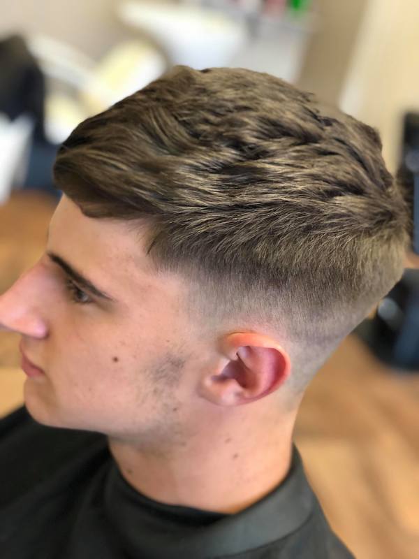 Fade with scissor cut to top giving that textured style for alot of movement