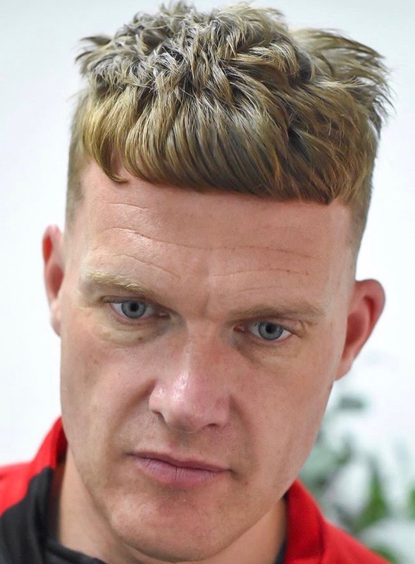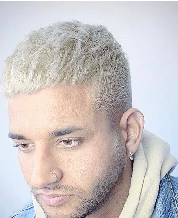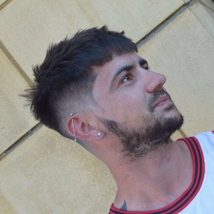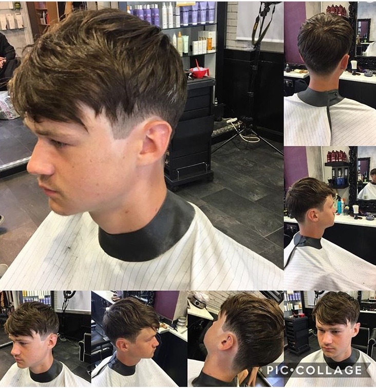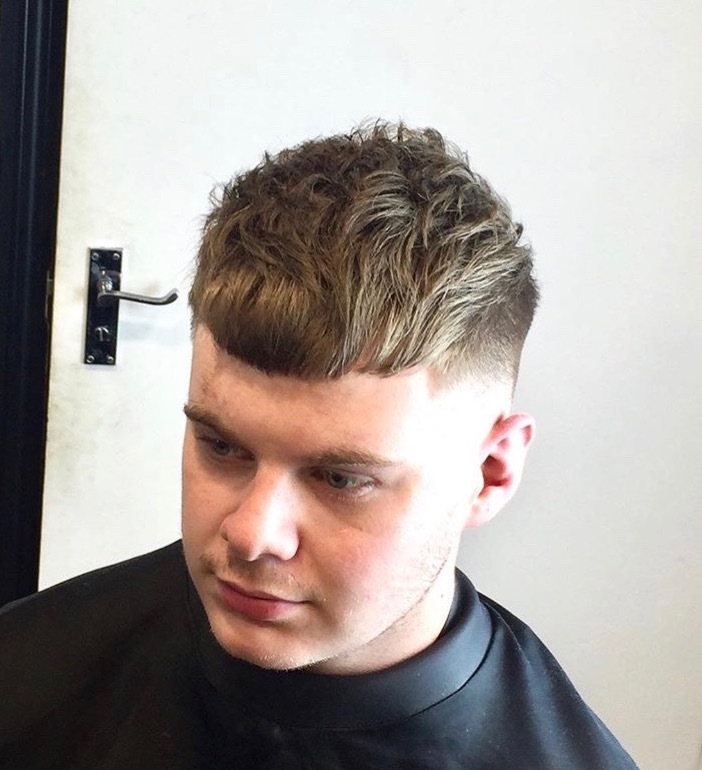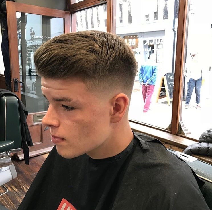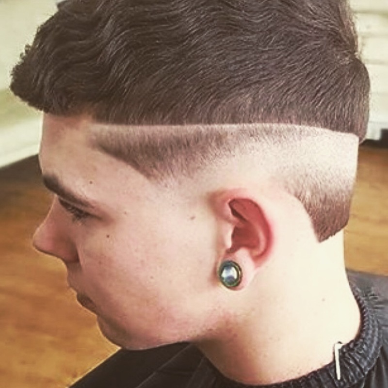 Fade with scissor cut to top giving that textured style for alot of movement