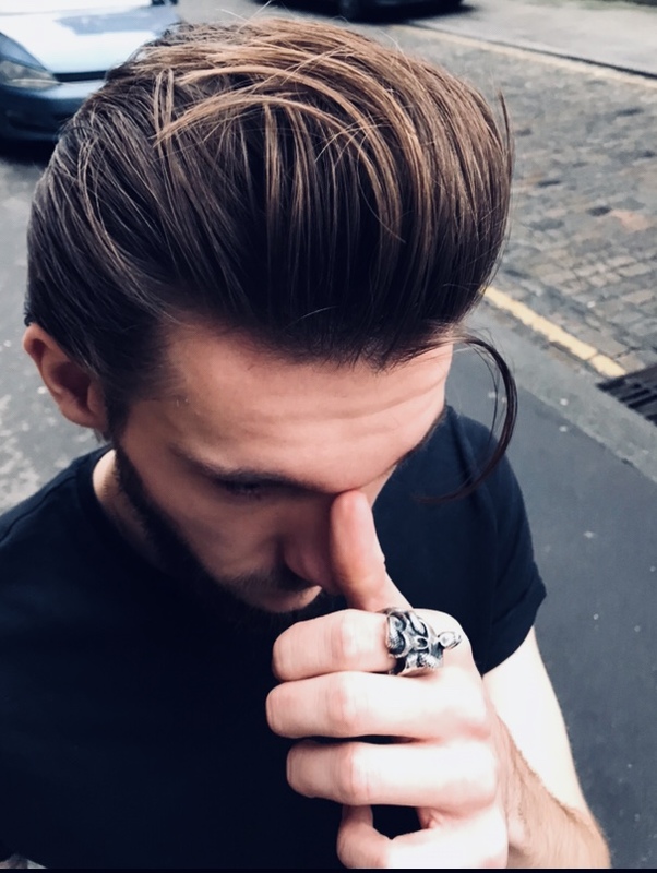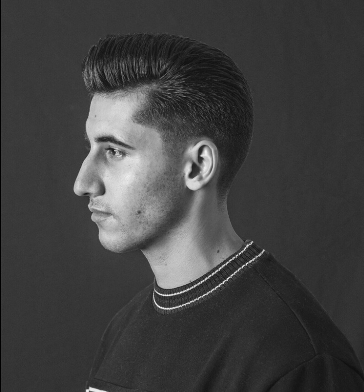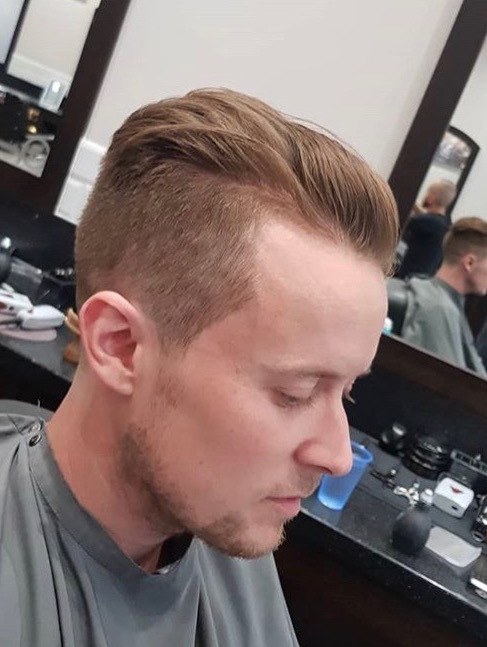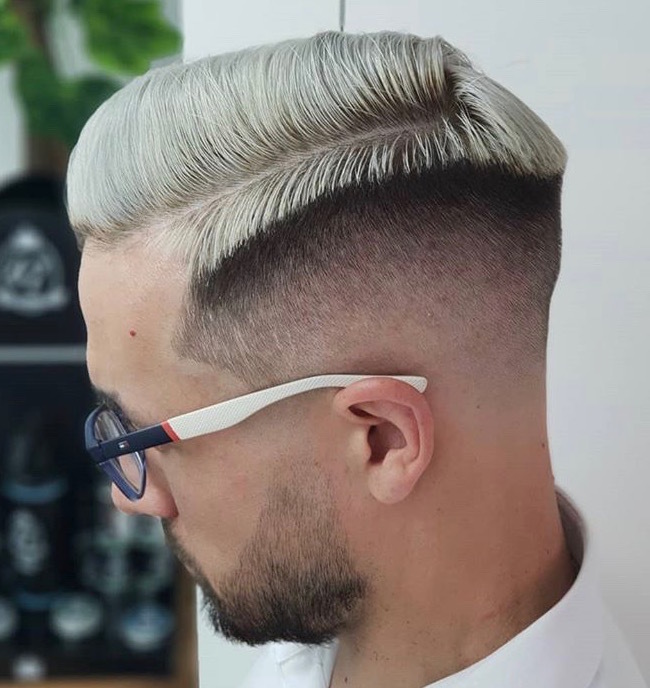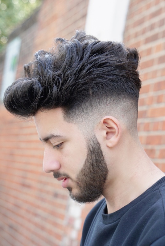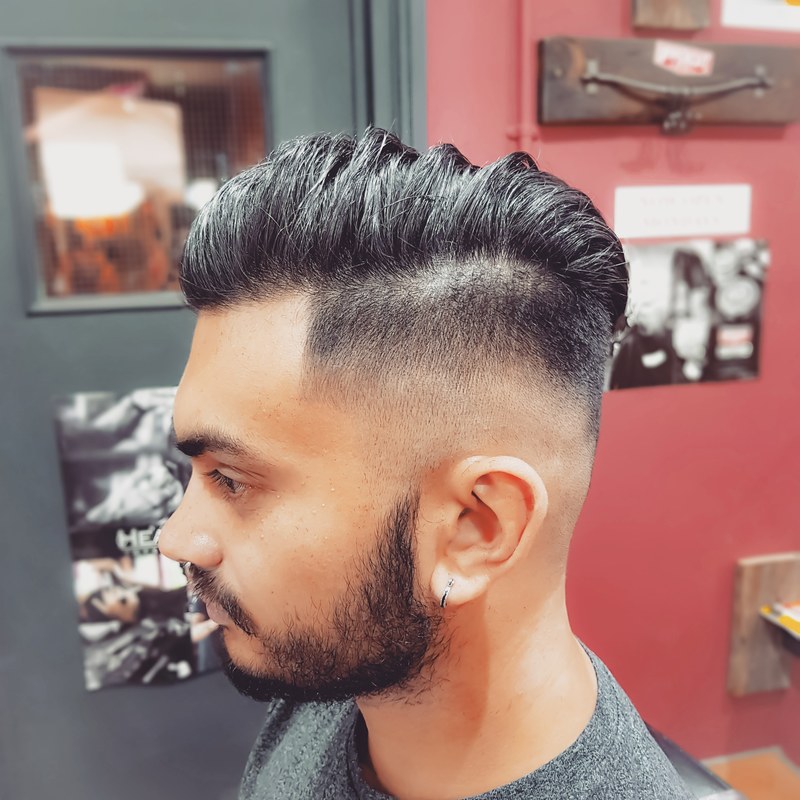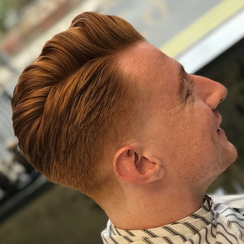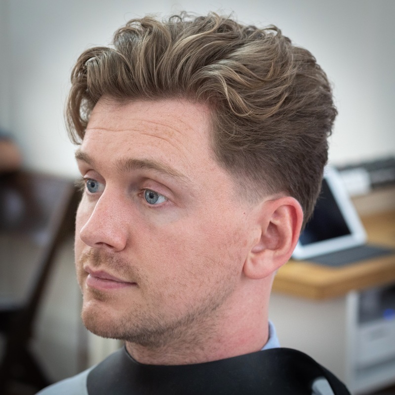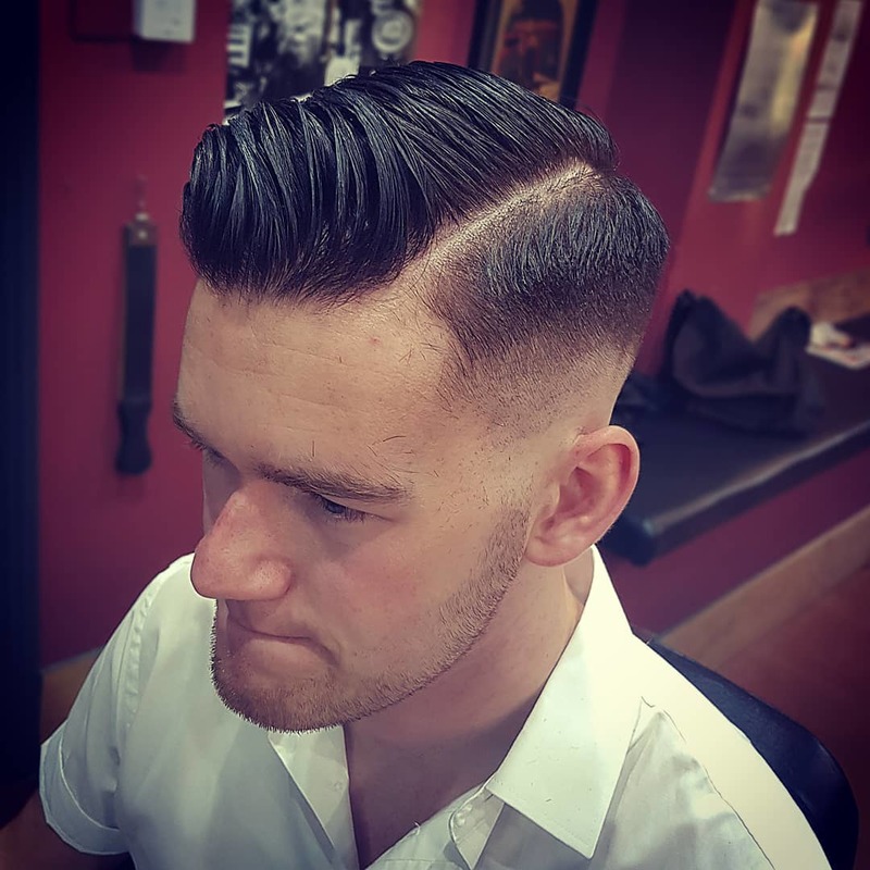 Classic pomp skin faded and quiffed with surgical line at the side
