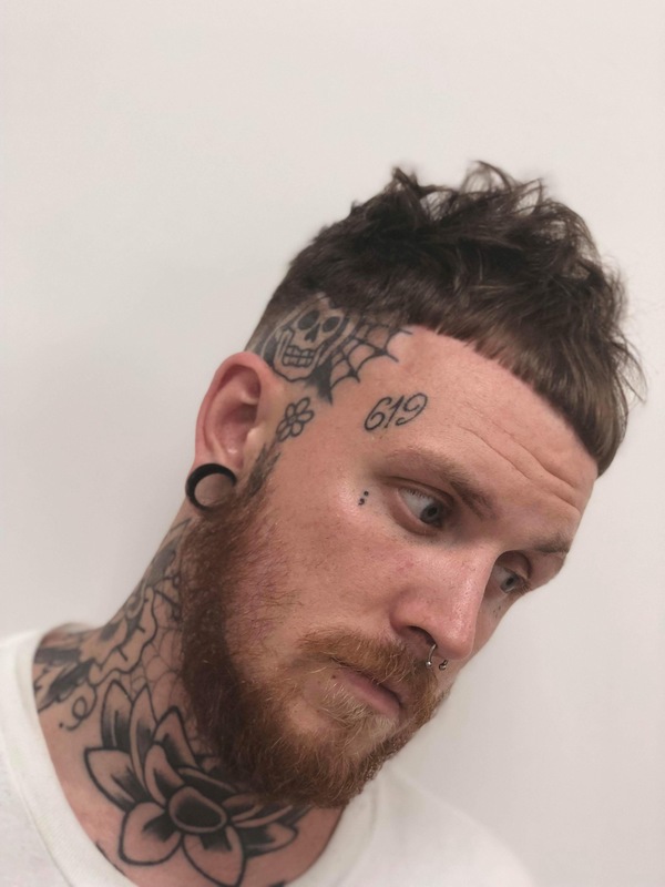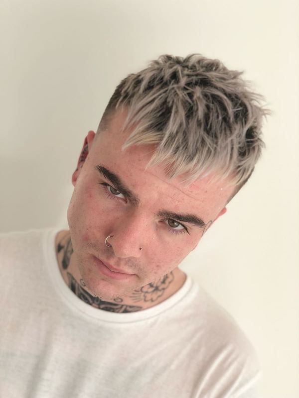 Punks not dead; Blunt fringe with a heavy graduation working forwards giving us playful loose layers towards the crown, finished off with a smooth fade.