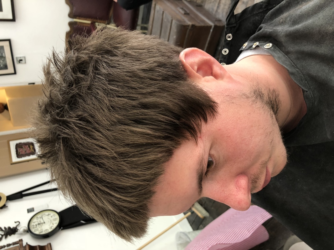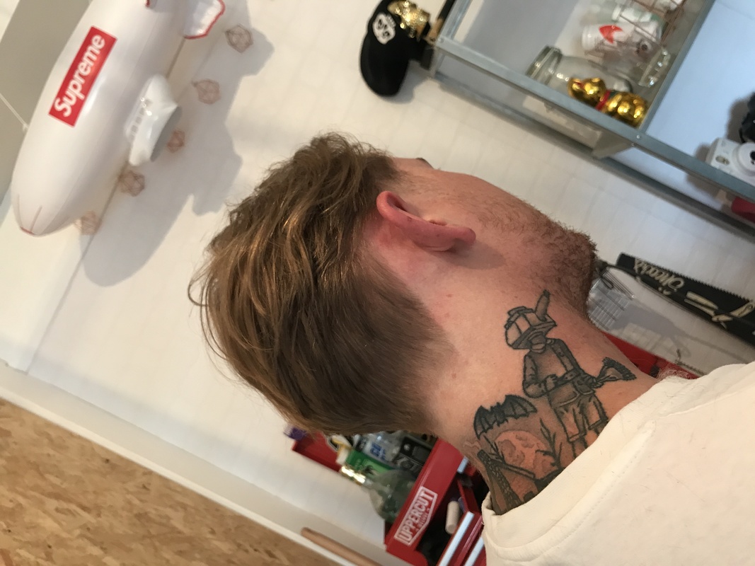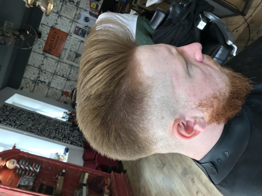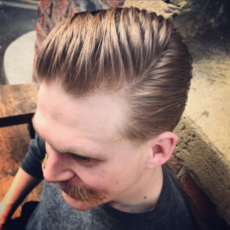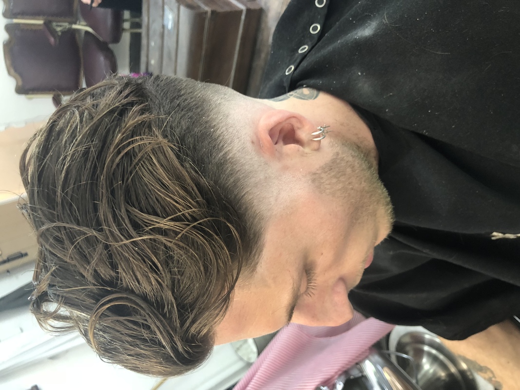 Shoe section on top , started with a 0 as my guide.. Mini clippers under that then foils.. 2 above the 0 and faded the middle out.. kept it low at the back.. Point cutting through the top layers taking some weight out with the razor.. leaving it disconnected through the sides an blending it nearer the back