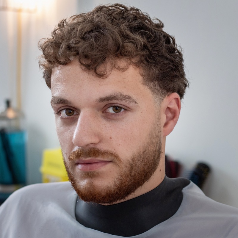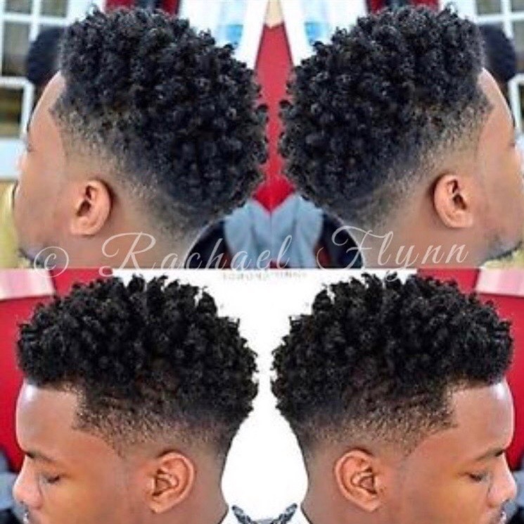 Bald fade sides. Diffuser blow dried to enhance curls and waves.
