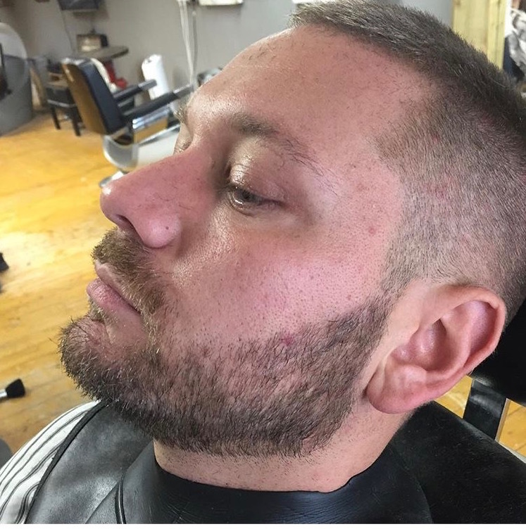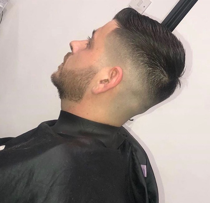 Here we have a classic skin fade but with a big beard to boost, free handed to perfection and faded in to the last corner, a beard this sharp is dangerous.