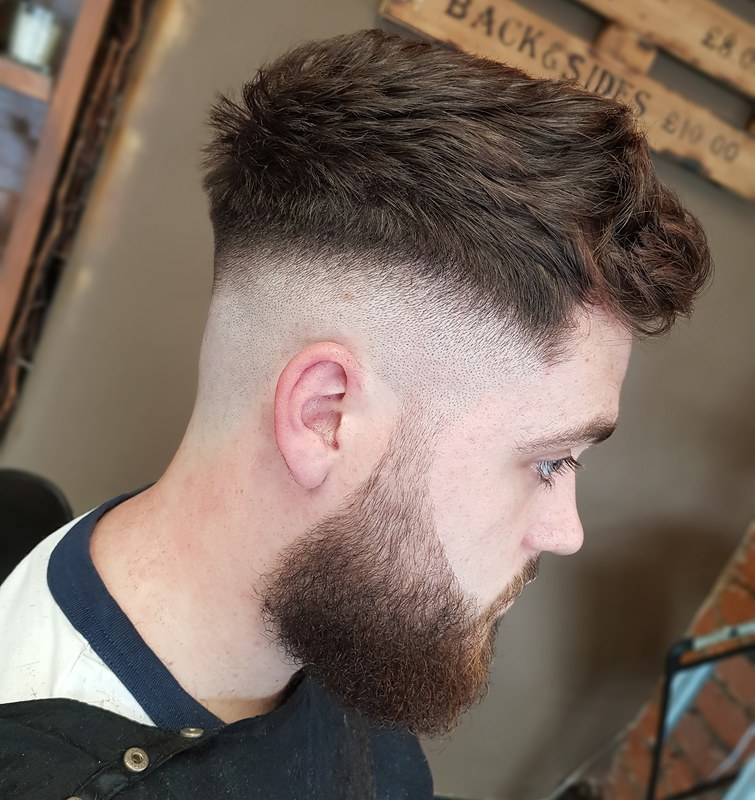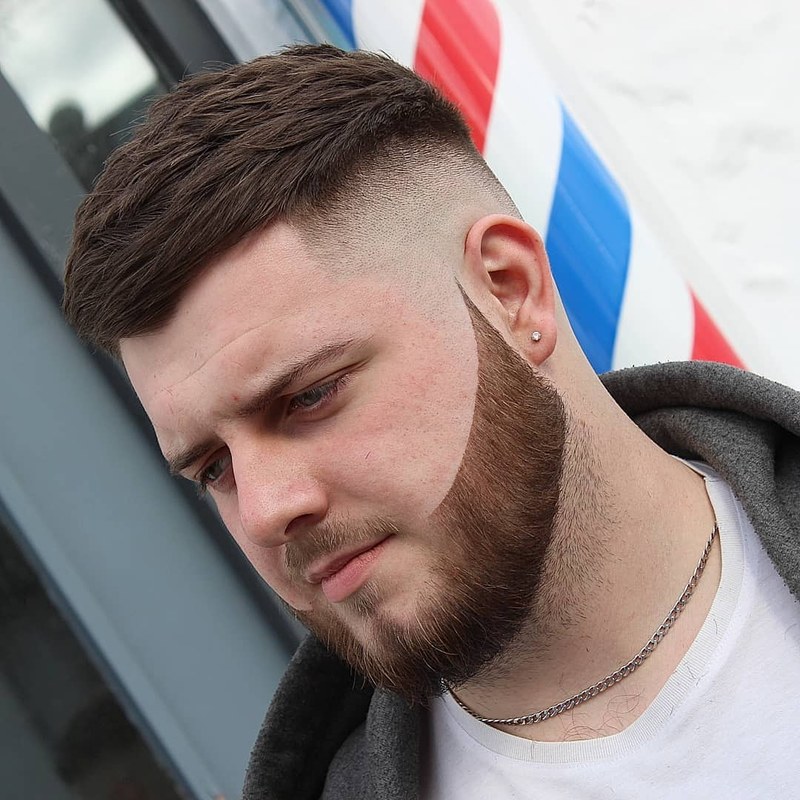 This cut has a two hard parts, a beard shape to complement the fade. With a creative look on top to catch the eye.