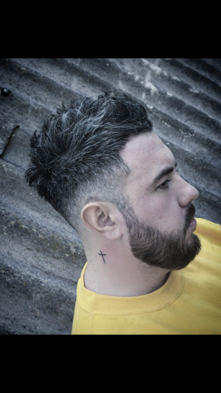 Medium fade number 0.5 with texture at the front Pushing forward with beard time faded from the sides to a number 3