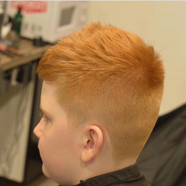 Mid skinfade with loads of texture and movement on top. Pre bleached and coloured with Fiudge colour mix Mahogony, brunette and blond mixer to create this unique colour.
