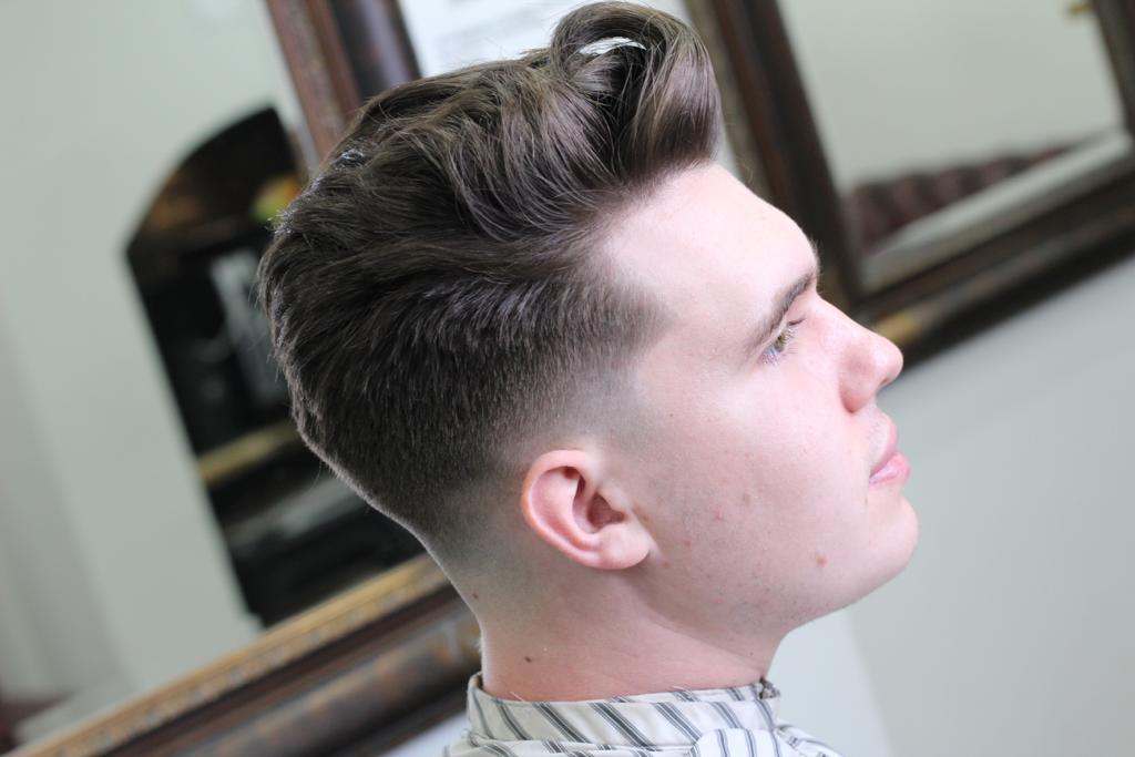 Fade on the sides and back accordingly to the structure of the head and natural flow to the hair on top with no product.