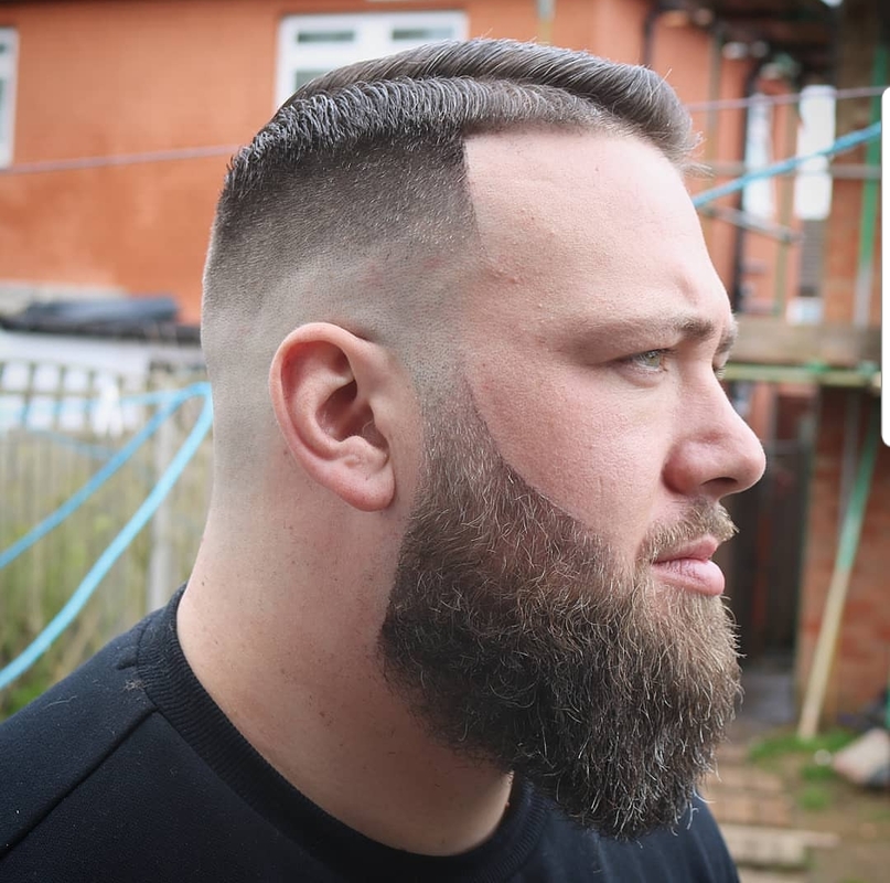 This cut has a two hard parts, a beard shape to complement the fade. With a creative look on top to catch the eye.