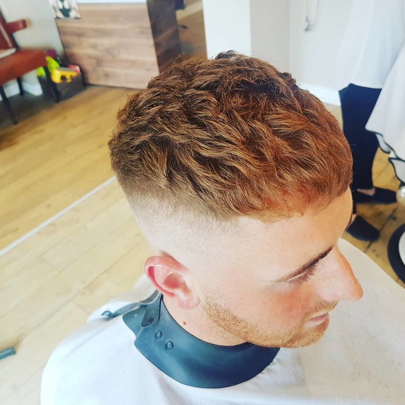 Fade with scissor cut to top giving that textured style for alot of movement