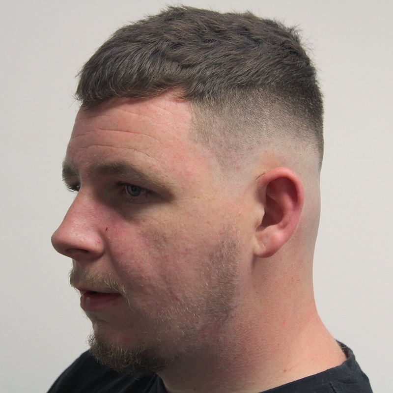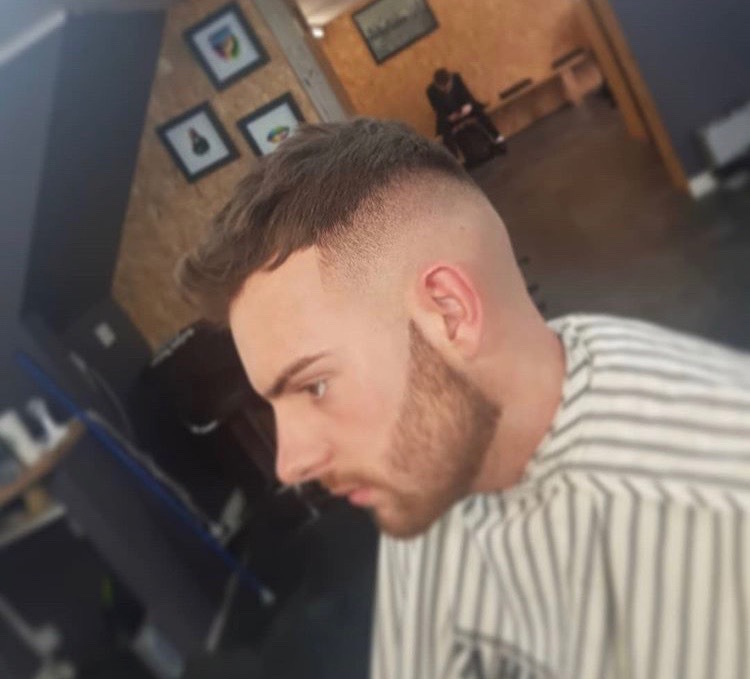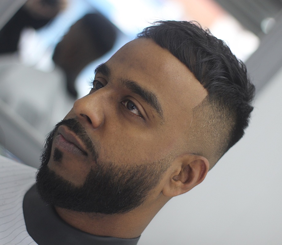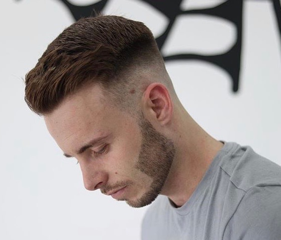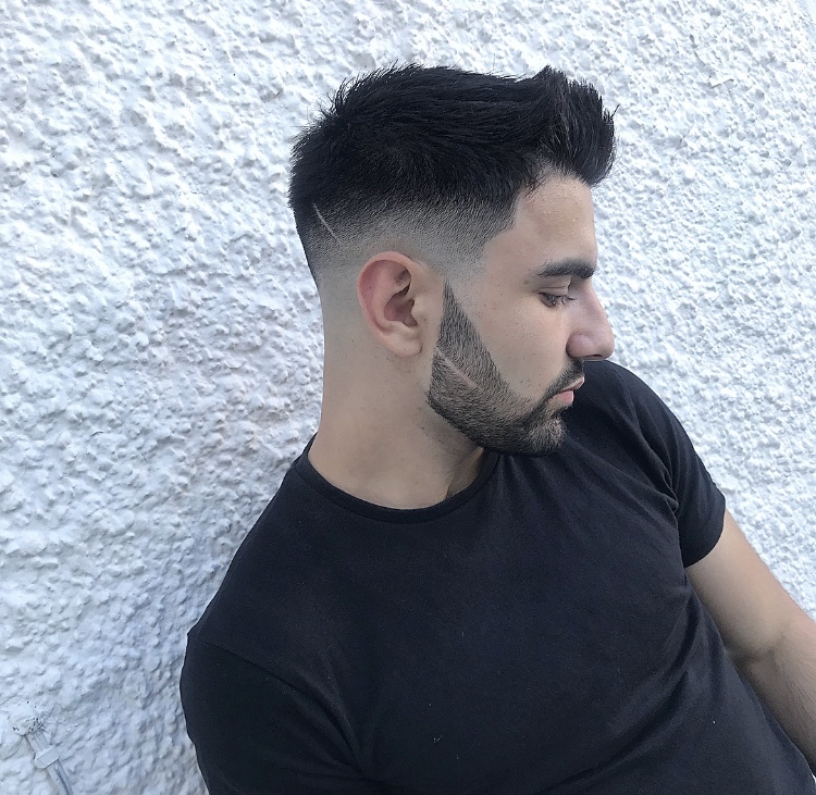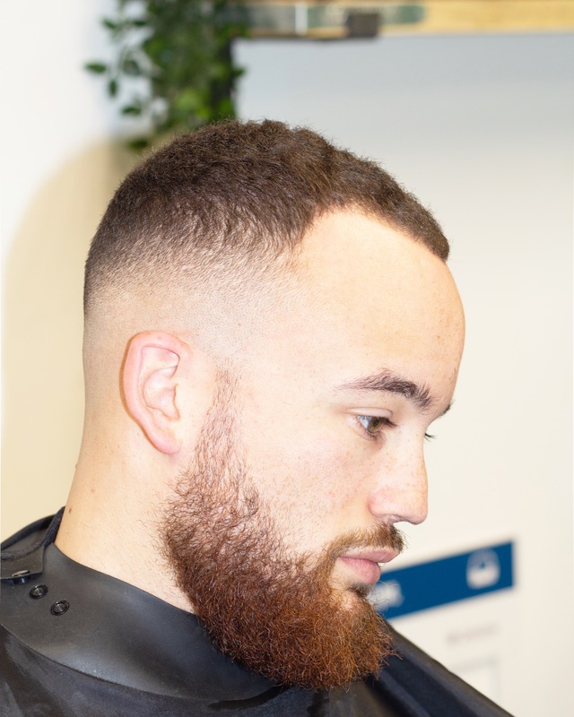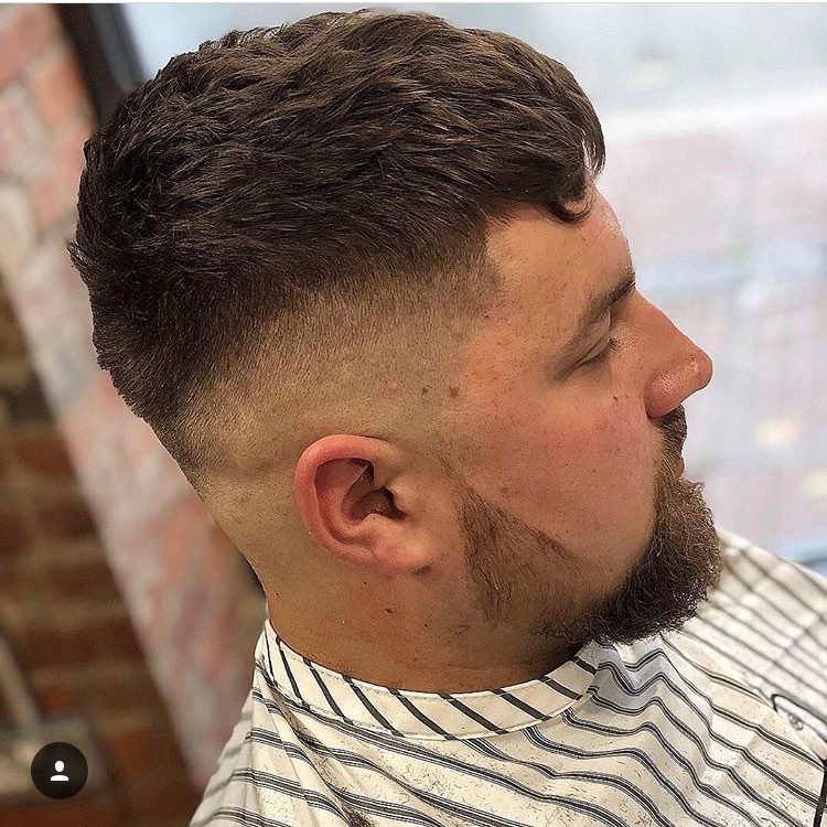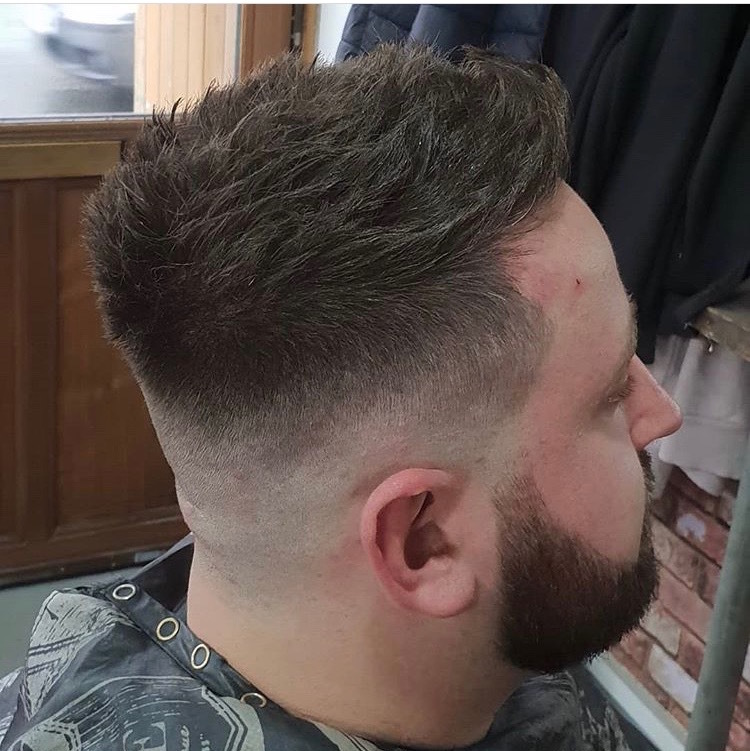 Medium fade number 0.5 with texture at the front Pushing forward with beard time faded from the sides to a number 3