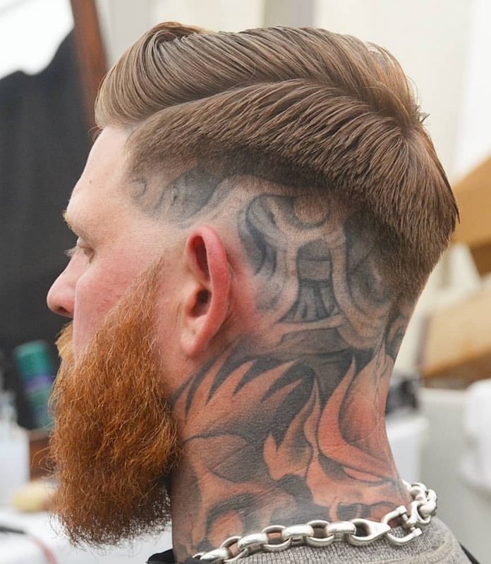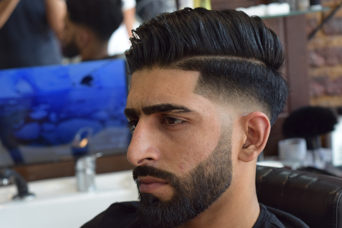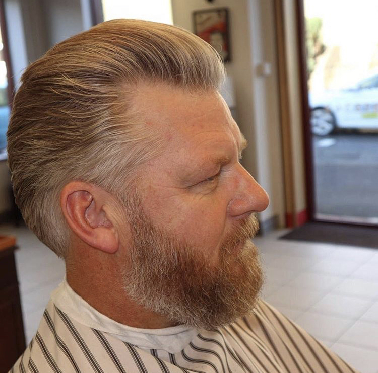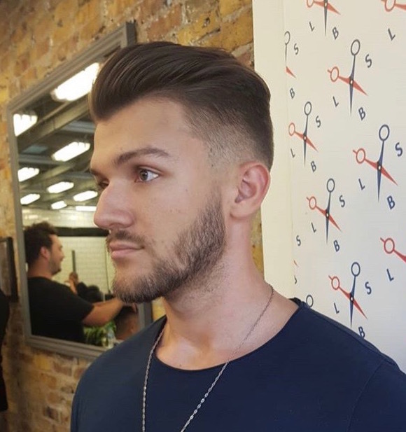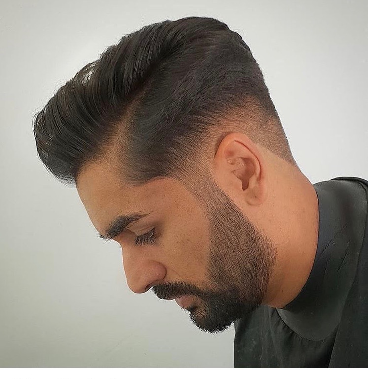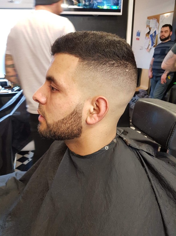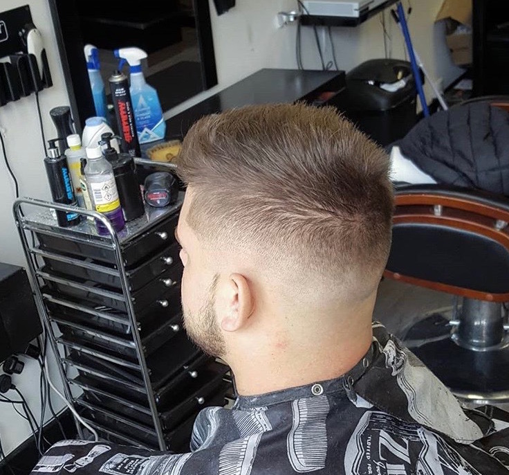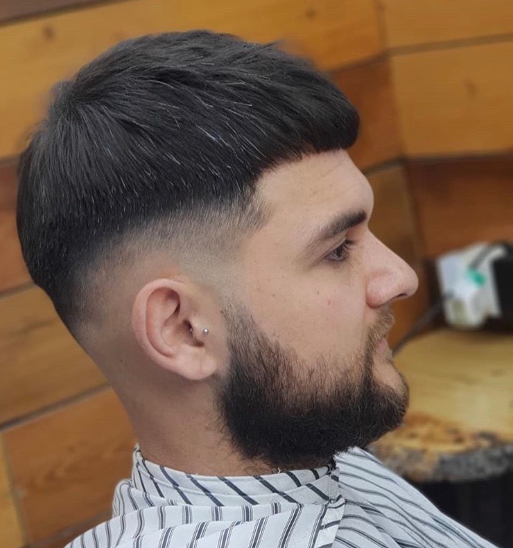 Medium fade number 0.5 with texture at the front Pushing forward with beard time faded from the sides to a number 3
