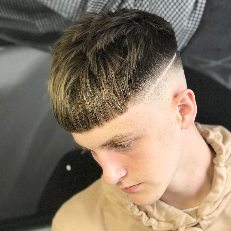 Skin fade,crop blunt fringe slightly different take on surgical part.