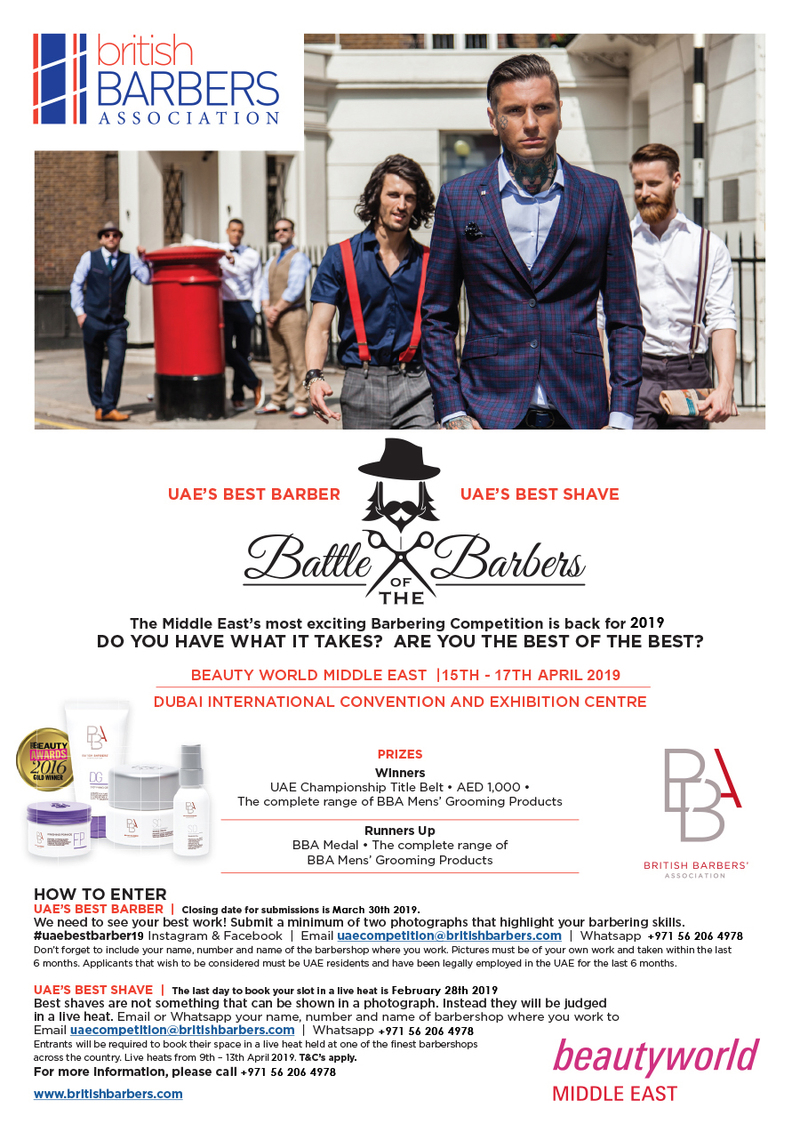 British Barbers’ Association (BBA) in partnership with Beautyworld Middle East, shines the spotlight on the art of barbering, where UAE’s best barbers get to showcase their craft.