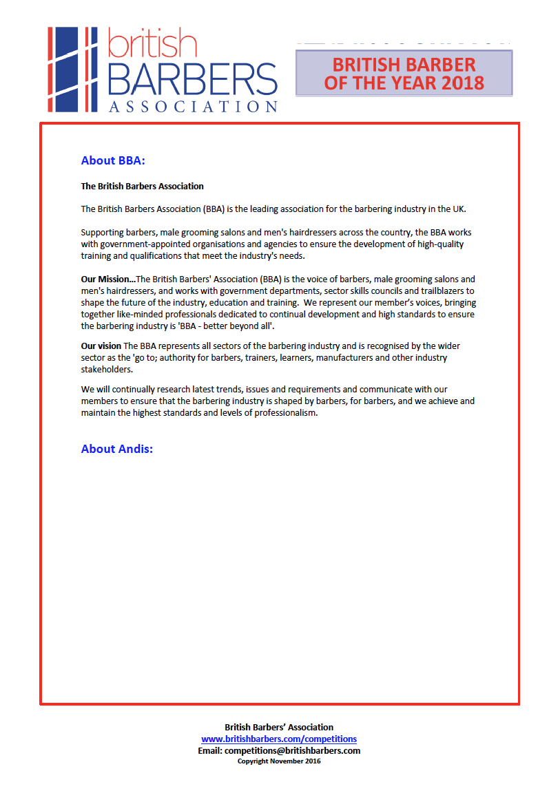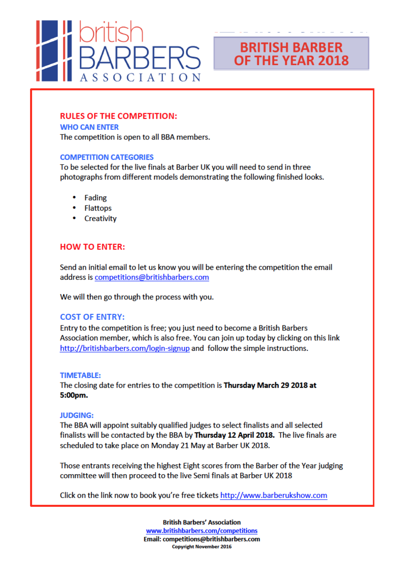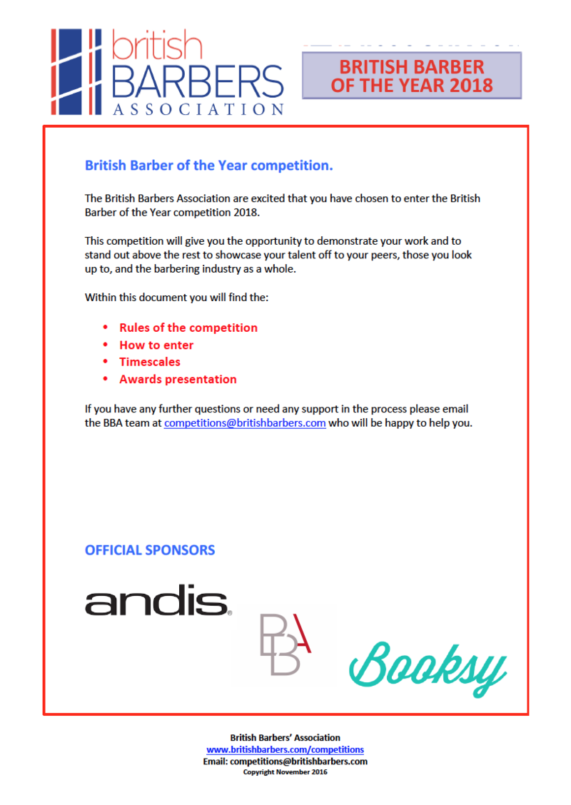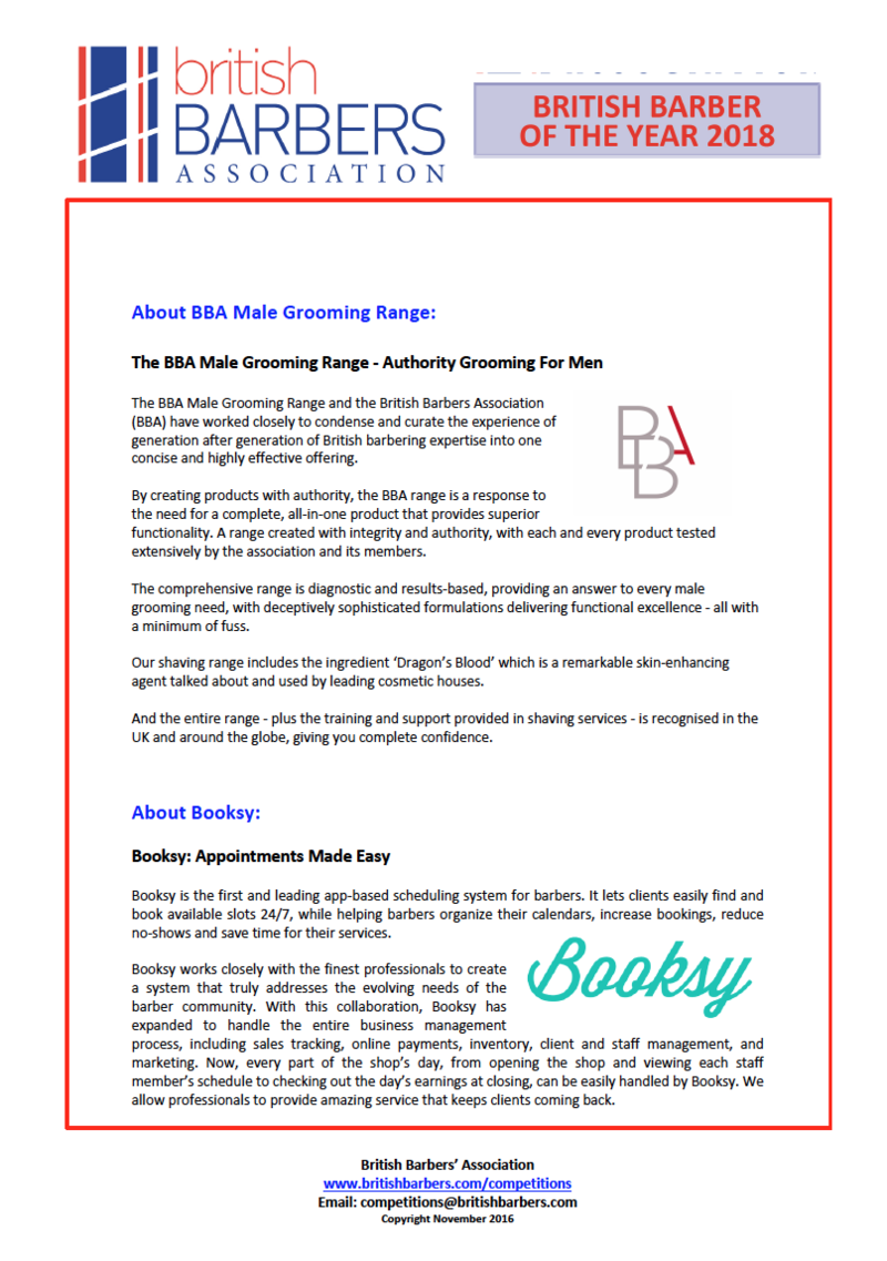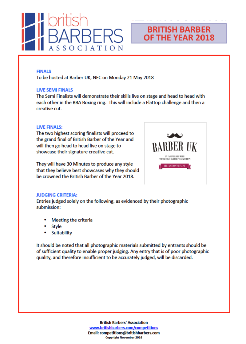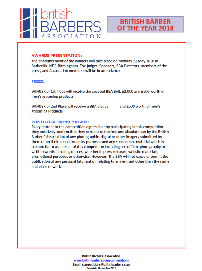 To request an application form, contact the BBA at competitions@britishbarbers.com
