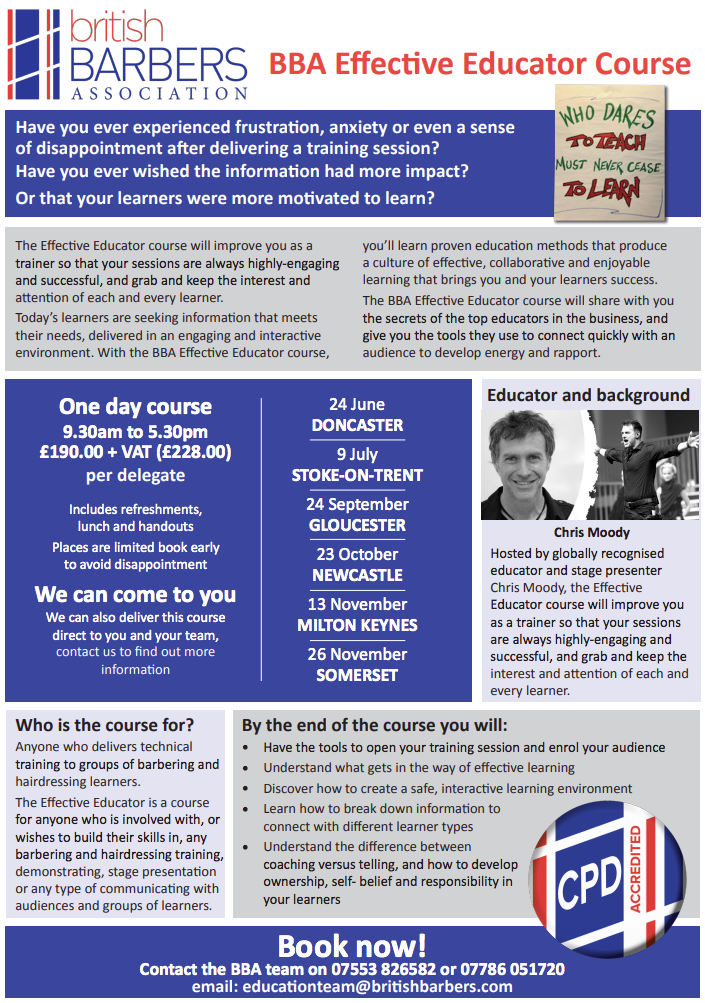 Limited seats available. Call us today at 07 553 826582 or 07786 051720 or drop an email to educationteam@britishbarbers.com