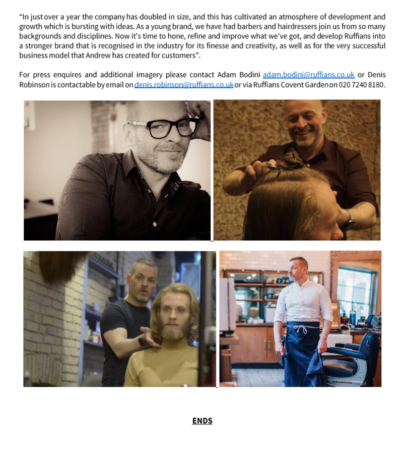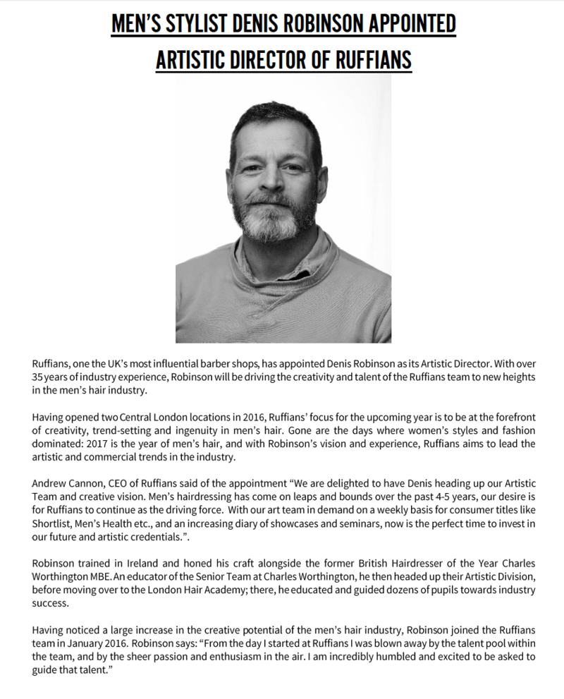 RUFFIANS - New Artistic Director of Ruffians Men's Stylist Denis Robinson is appointed Artistic Dire